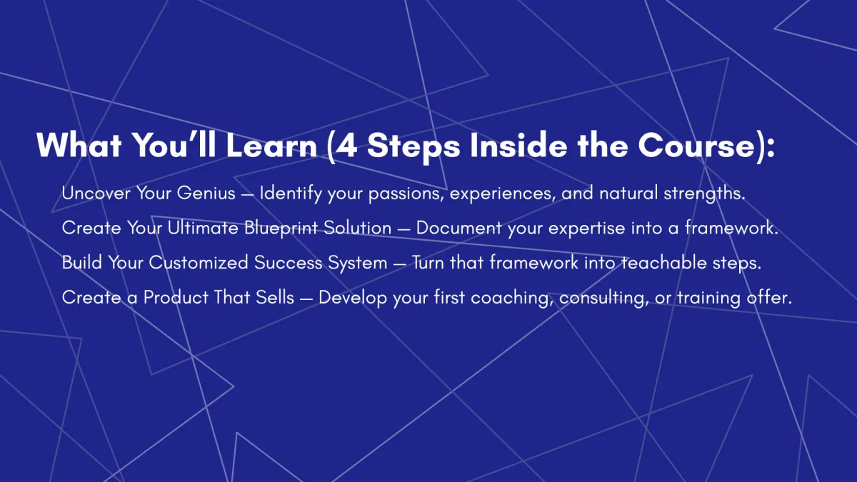 You already have the expertise — now learn how to transform it into a profitable product, service, or system that changes lives.